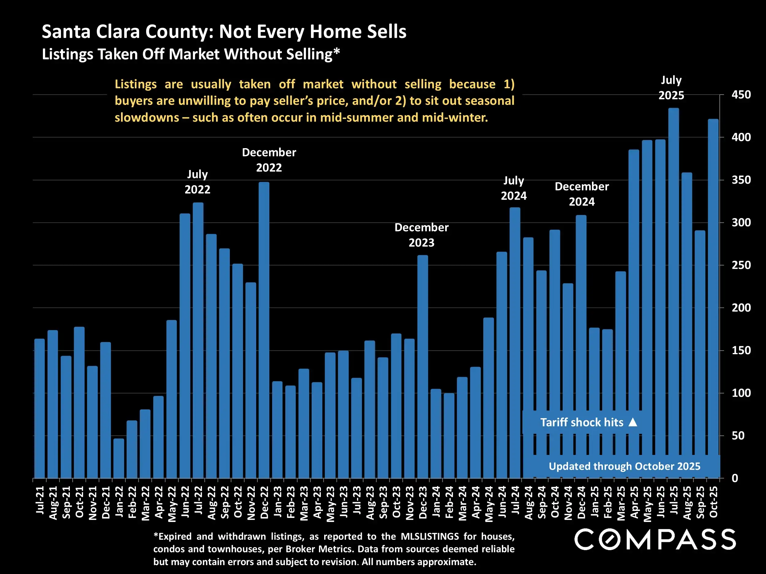 Outside of the interest rates, tariff also had a big impact on the housing market. Historically a very robust market in silicon valley, Santa Clara County, more homes were taken off the market without selling. see graph below.